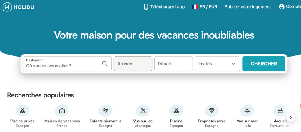 Holidu excelle par la richesse de ses offres, couvrant plus de 20 pays européens dont l’Espagne, la France, l’Allemagne et l’Italie. Ses logements s’adressent à toutes les attentes :
